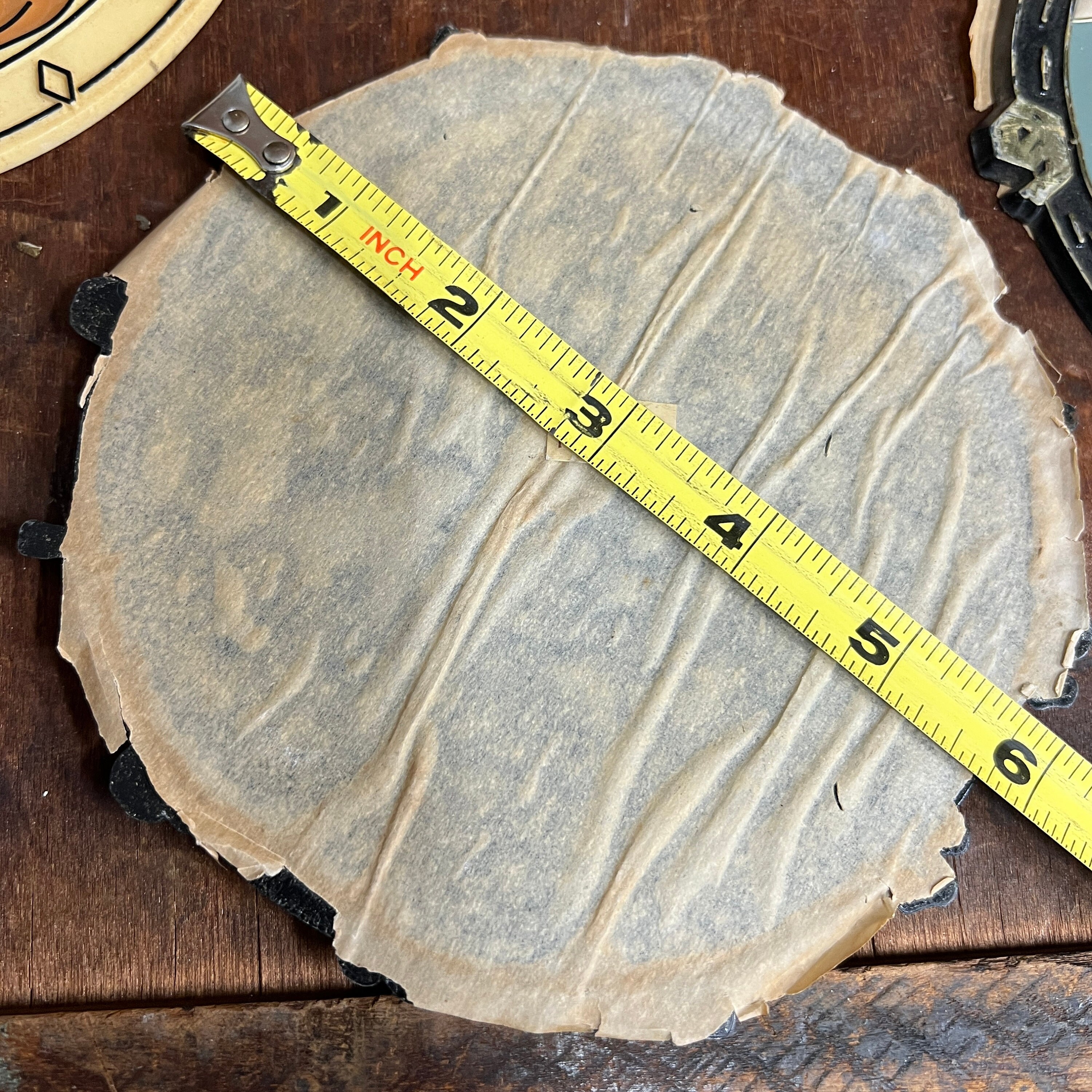 See photos for sizing. 6" round