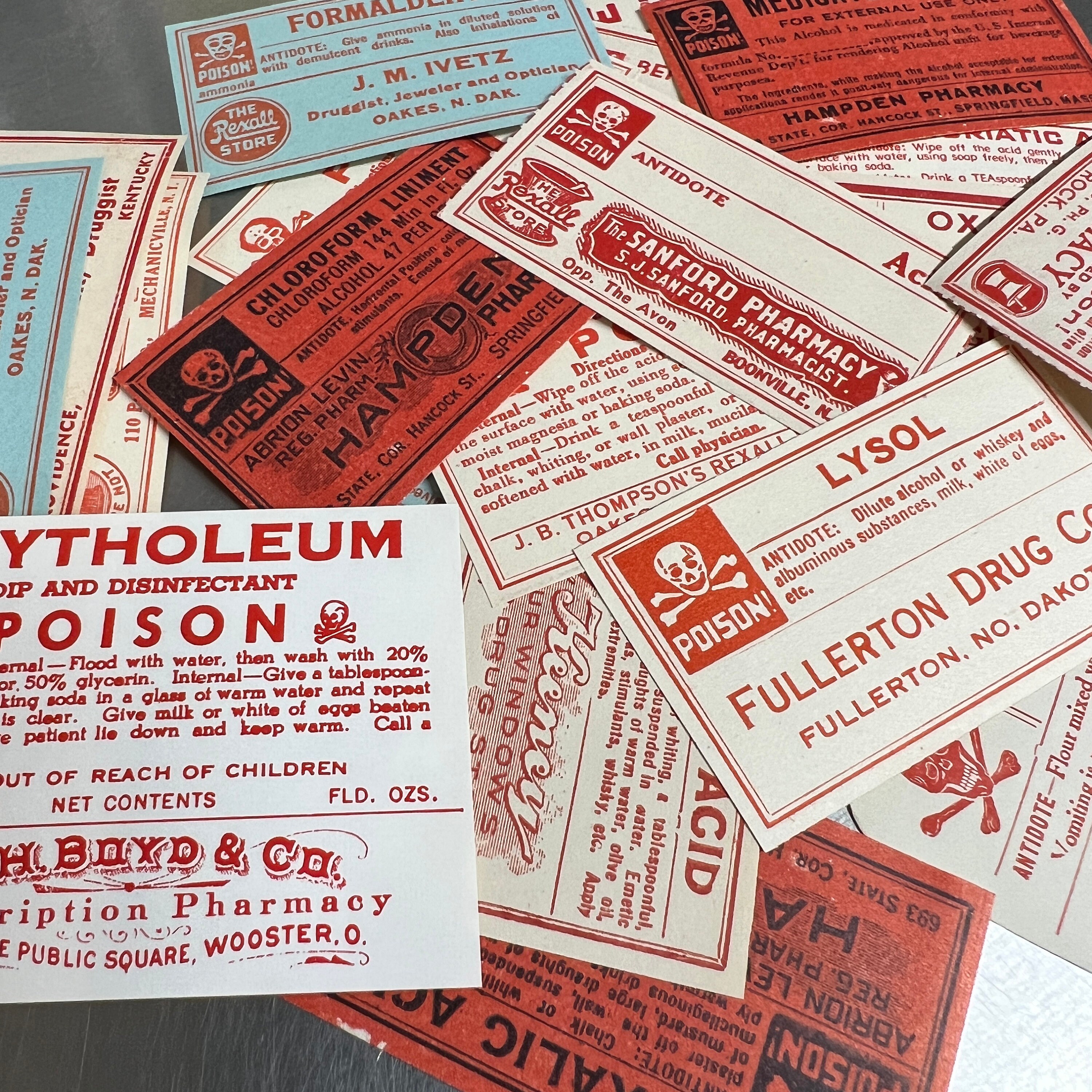 These poison labels are an amazing find! These old drug labels would be the perfect accent for your next project.