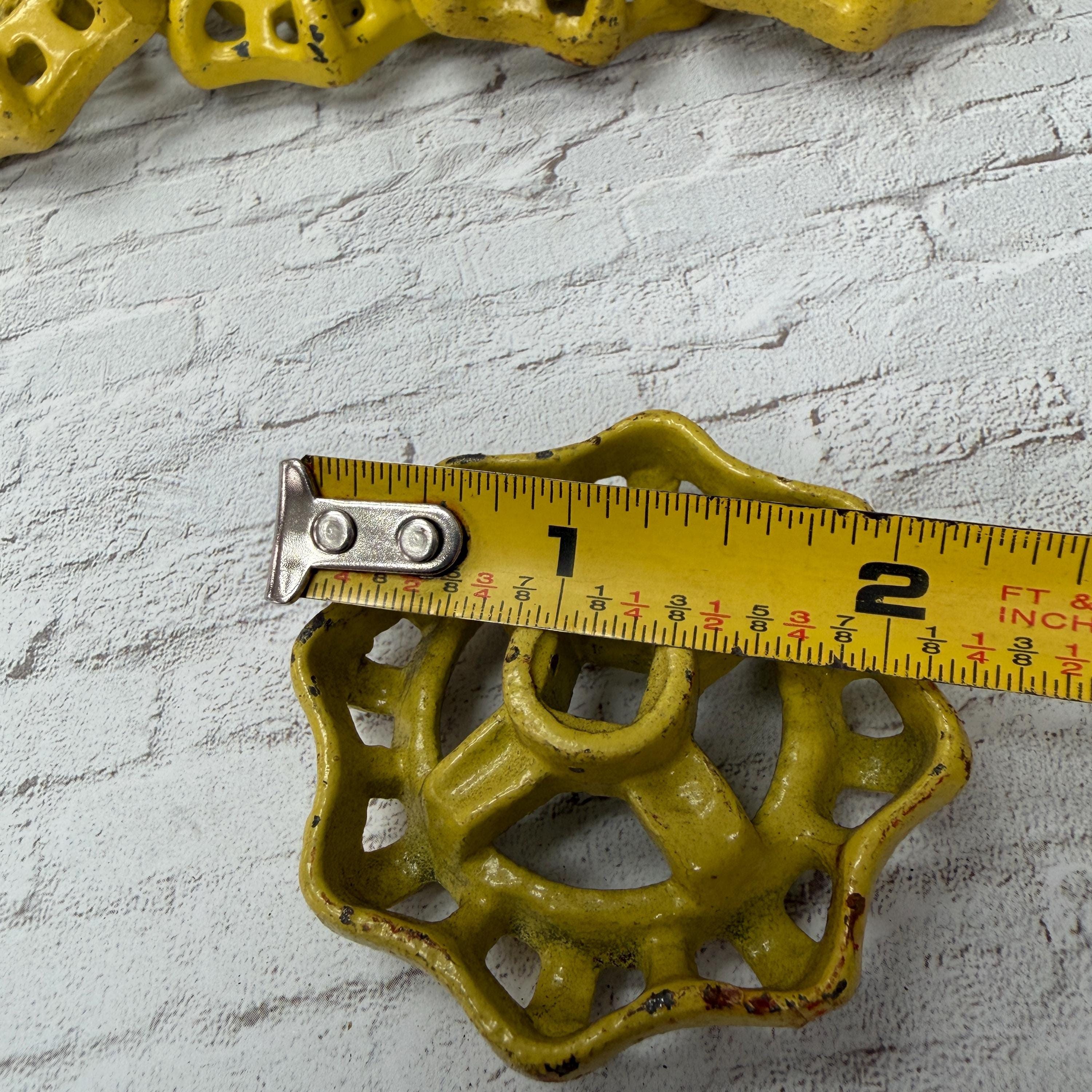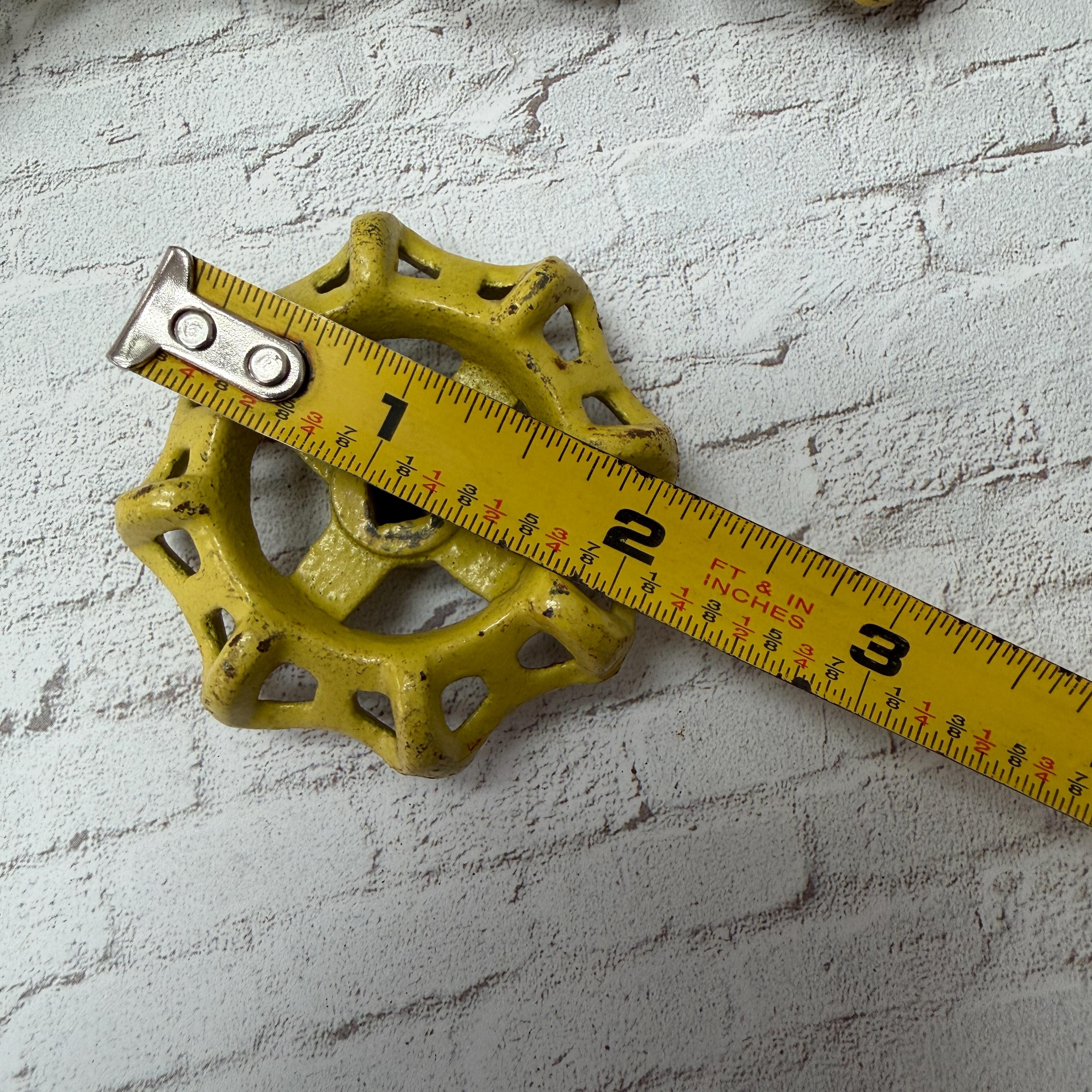 Awesome yellow industrial valve handle with great wear and patina.