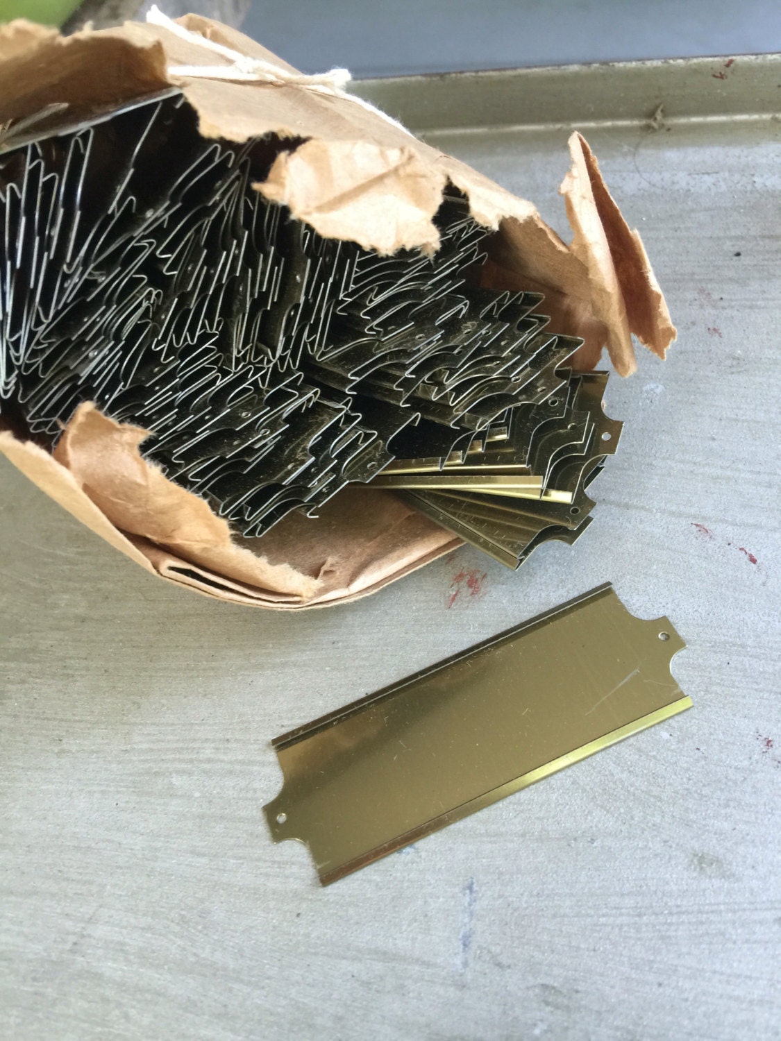 These super cool old brass plated drawer label holders have a look to them and would be a perfect vintage touch to your next up-cycling project!