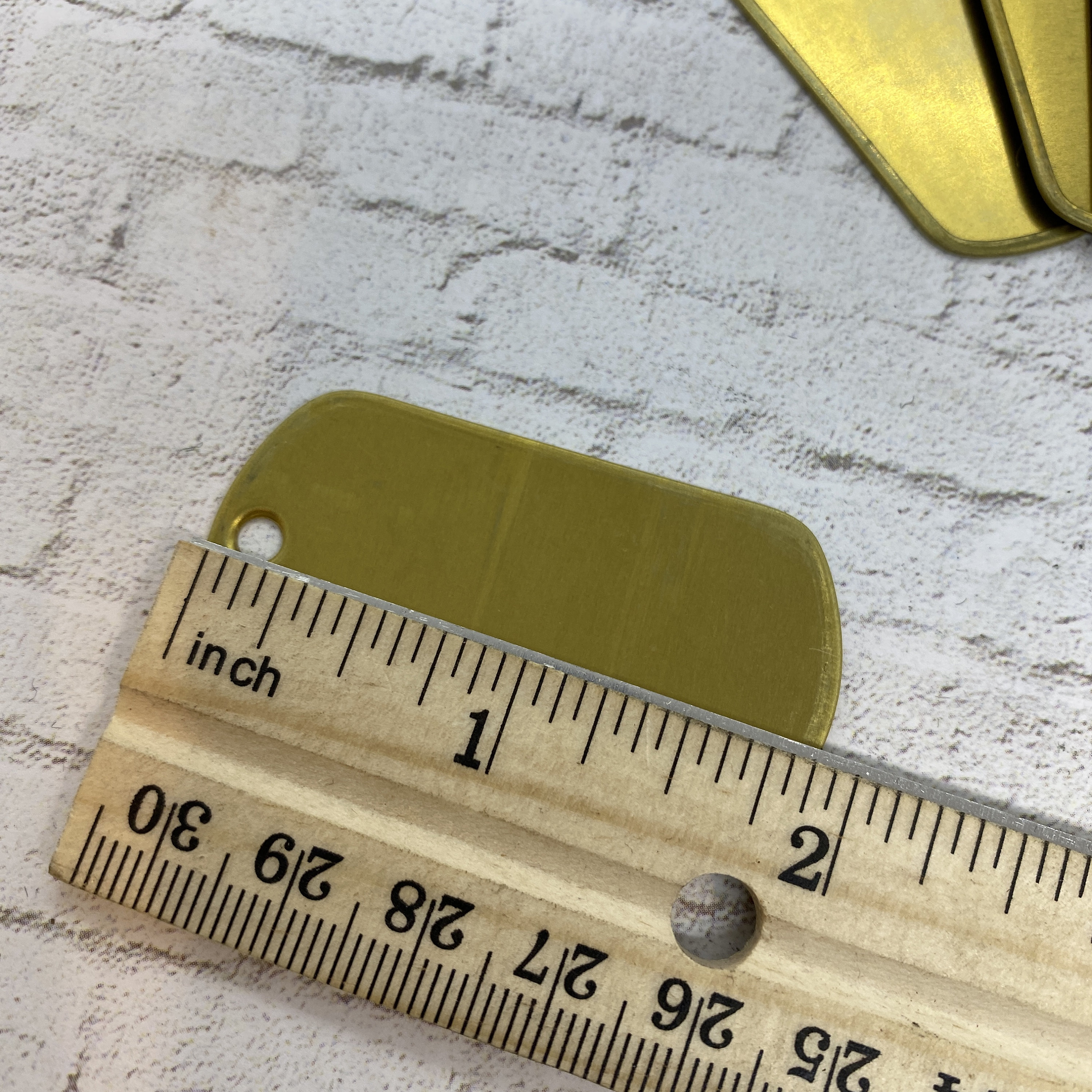 Wonderful brass army dog tags with one hole. These military tags have a nice weight to them with a rolled edge.